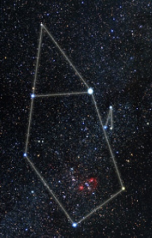 두번째 마차부자리는 5 각형으로 보이나 남쪽에 있는 2 등성 별은 사실 황소자리의 별이며 알파별인 카펠라는 숫염소란 뜻으로 하늘에서 여섯 번째로 밝은 별입니다. 마차부자리는 헤파이스토스와 아테나 사이에서 태어난 에리크토니오스는 다리가 불편했고 자신이 개발한 4부 마차를 자주 이용했는데 제우스가 그의 발명을 높게 여겨 하늘의 별자리로 만들었다는 신화가 있습니다.