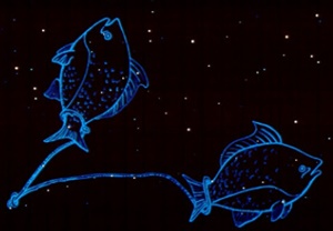 물병자리와 양자리 사이에 있는 물고기자리는 황도 12궁 중에서 가장 마지막에 위치하고 있습니다. 가을철 남쪽 하늘에서 보이는 별자리로 한 개의 끈으로 두 마리의 물고기가 연결된 커다란 V자 모양을 하고 있지만 4 등성 별자리이기 때문에 눈으로 관찰하기에는 어렵습니다.